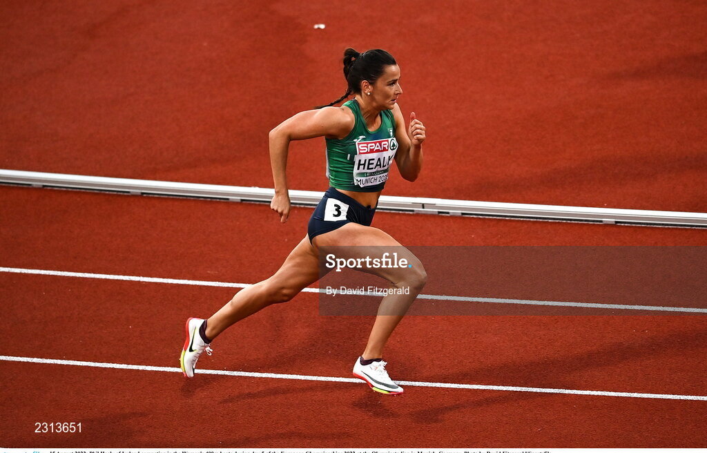15 August 2022; Phil Healy of Ireland competing in the Women's 400m heats during day 5 of the European Championships 2022 at the Olympiastadion in Munich, Germany. Photo by David Fitzgerald/Sportsfile