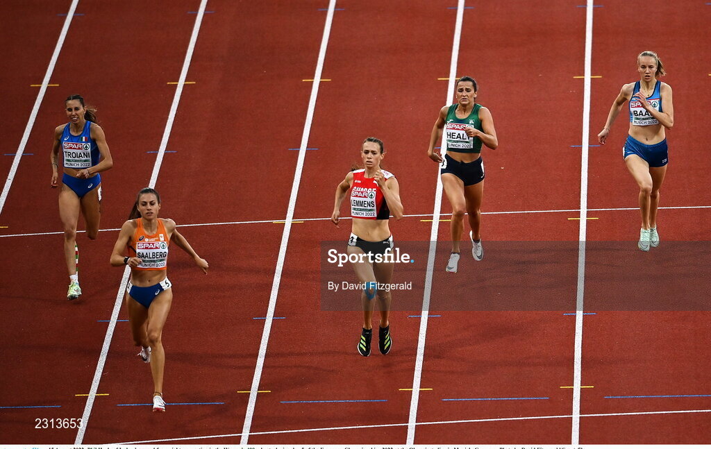 15 August 2022; Phil Healy of Ireland, second from right, competing in the Women's 400m heats during day 5 of the European Championships 2022 at the Olympiastadion in Munich, Germany. Photo by David Fitzgerald/Sportsfile