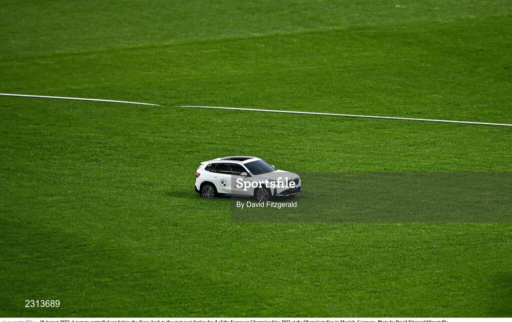 15 August 2022; A remote controlled car brings the discus back to the start post during day 5 of the European Championships 2022 at the Olympiastadion in Munich, Germany. Photo by David Fitzgerald/Sportsfile