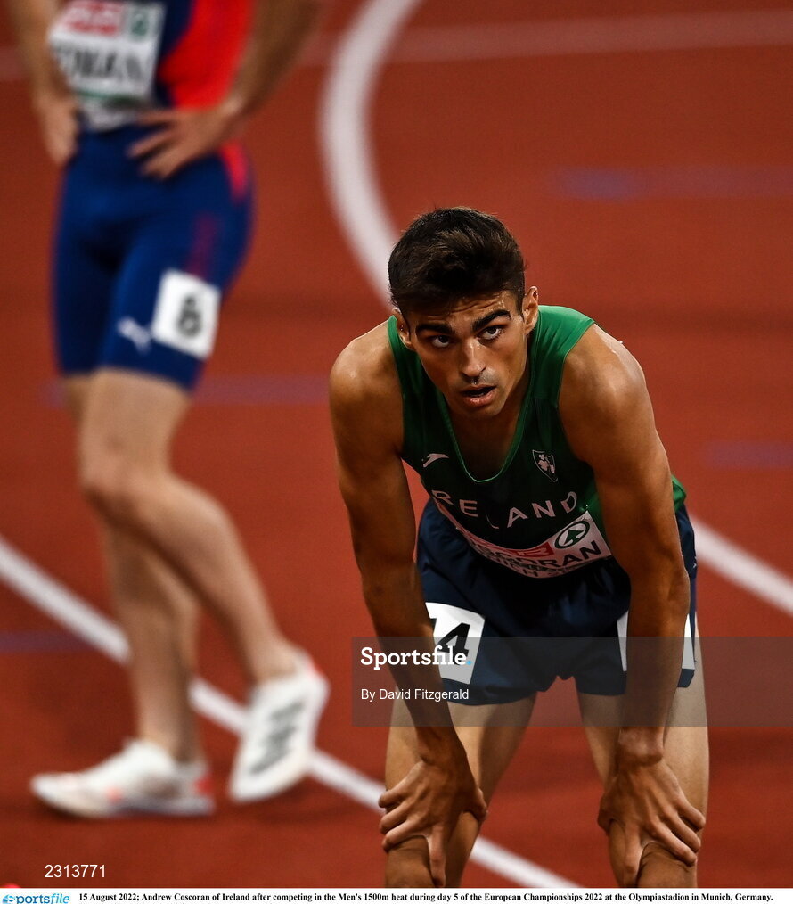 15 August 2022; Andrew Coscoran of Ireland after competing in the Men's 1500m heat during day 5 of the European Championships 2022 at the Olympiastadion in Munich, Germany. Photo by David Fitzgerald/Sportsfile