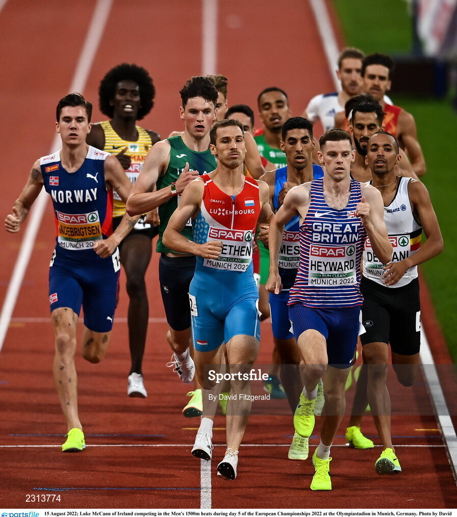 15 August 2022; Luke McCann of Ireland competing in the Men's 1500m heats during day 5 of the European Championships 2022 at the Olympiastadion in Munich, Germany. Photo by David Fitzgerald/Sportsfile