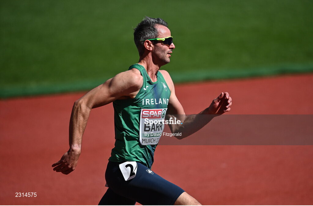 17 August 2022; Thomas Barr of Ireland competing in the 400m Hurdles heat during day 7 of the European Championships 2022 at the Olympiastadion in Munich, Germany. Photo by David Fitzgerald/Sportsfile