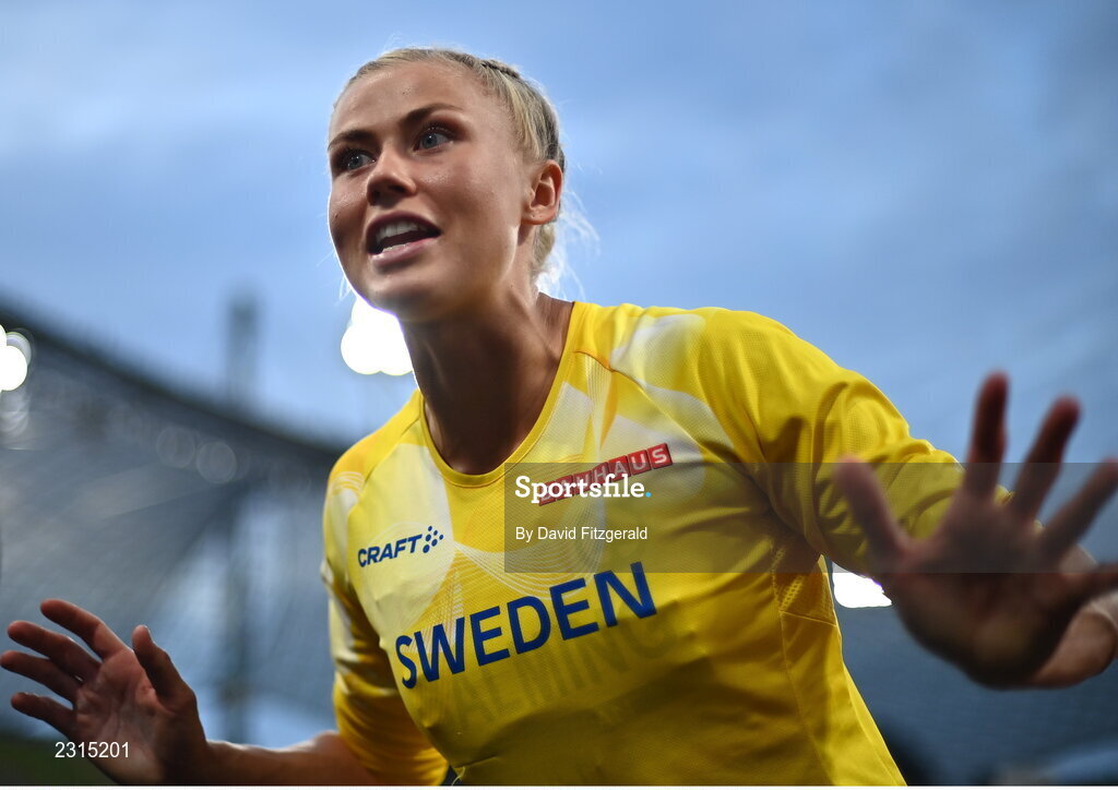 17 August 2022; Bianca Salming of Sweden during a break in the Women's Heptathlon Shot Putt during day 7 of the European Championships 2022 at the Olympiastadion in Munich, Germany. Photo by David Fitzgerald/Sportsfile