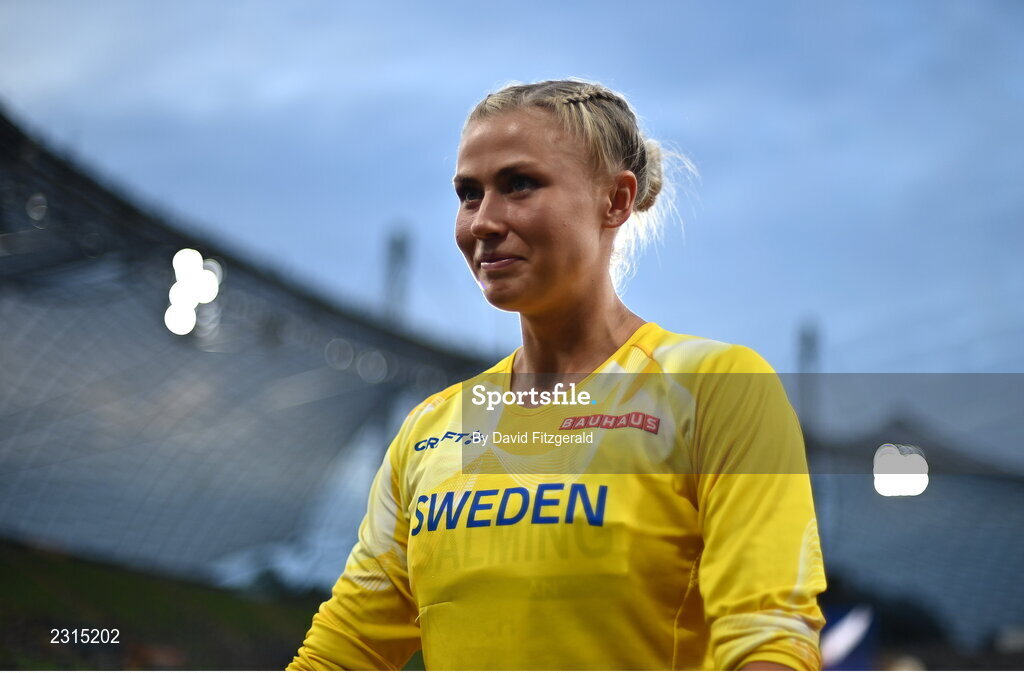 17 August 2022; Bianca Salming of Sweden during a break in the Women's Heptathlon Shot Putt during day 7 of the European Championships 2022 at the Olympiastadion in Munich, Germany. Photo by David Fitzgerald/Sportsfile
