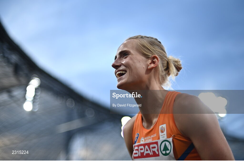 17 August 2022; Anouk Vetter of Netherlands during a break in the Women's Heptathlon Shot Putt during day 7 of the European Championships 2022 at the Olympiastadion in Munich, Germany. Photo by David Fitzgerald/Sportsfile
