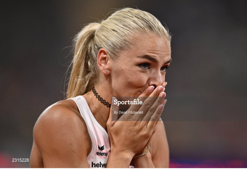 17 August 2022; Ivona Dadic of Austria after competing in the 200m event of the women's heptathlon during day 7 of the European Championships 2022 at the Olympiastadion in Munich, Germany. Photo by David Fitzgerald/Sportsfile