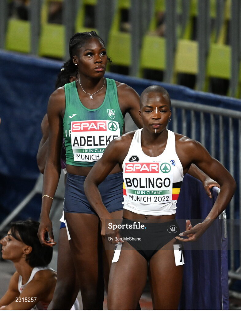 17 August 2022; Rhasidat Adeleke of Ireland, left, before the women's 400m final during day 7 of the European Championships 2022 at the Olympiastadion in Munich, Germany. Photo by Ben McShane/Sportsfile