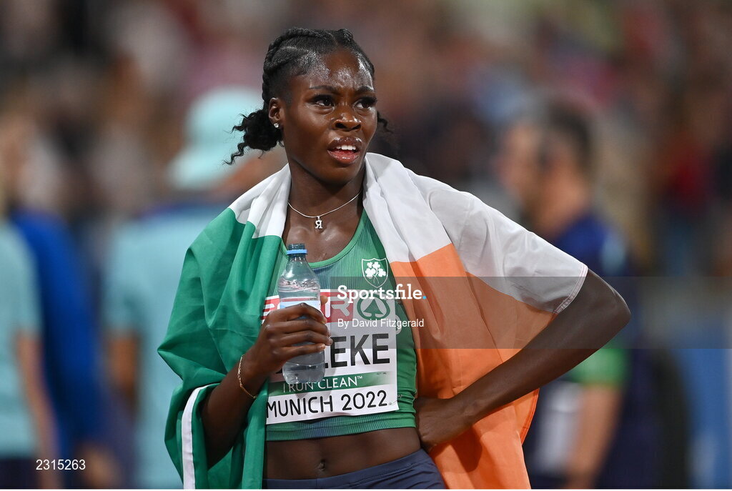 17 August 2022; Rhasidat Adeleke of Ireland after finishing fifth in the women's 400m final with a new national record of 50.53 during day 7 of the European Championships 2022 at the Olympiastadion in Munich, Germany. Photo by David Fitzgerald/Sportsfile