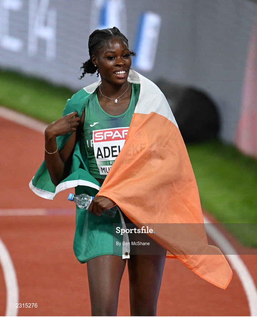 17 August 2022; Rhasidat Adeleke of Ireland after finishing fifth in the women's 400m final with a new national record of 50.53 during day 7 of the European Championships 2022 at the Olympiastadion in Munich, Germany. Photo by Ben McShane/Sportsfile