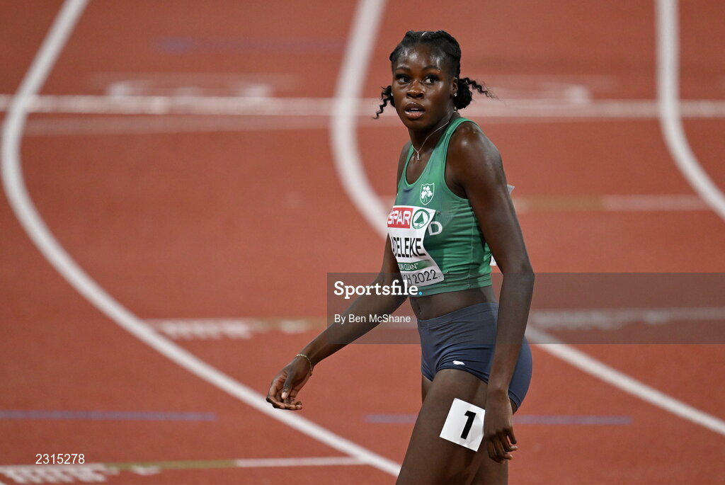17 August 2022; Rhasidat Adeleke of Ireland after finishing fifth in the women's 400m final with a new national record of 50.53 during day 7 of the European Championships 2022 at the Olympiastadion in Munich, Germany. Photo by Ben McShane/Sportsfile
