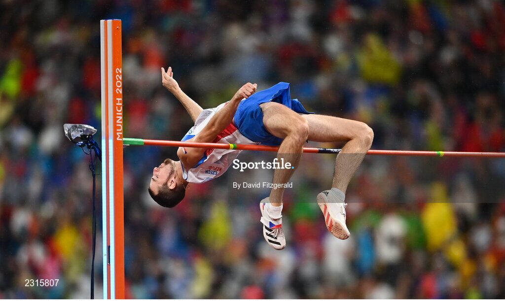 18 August 2022; Jan Stefela of Czech Republic competes in the Men's High Jump Final during day 8 of the European Championships 2022 at the Olympiastadion in Munich, Germany. Photo by David Fitzgerald/Sportsfile
