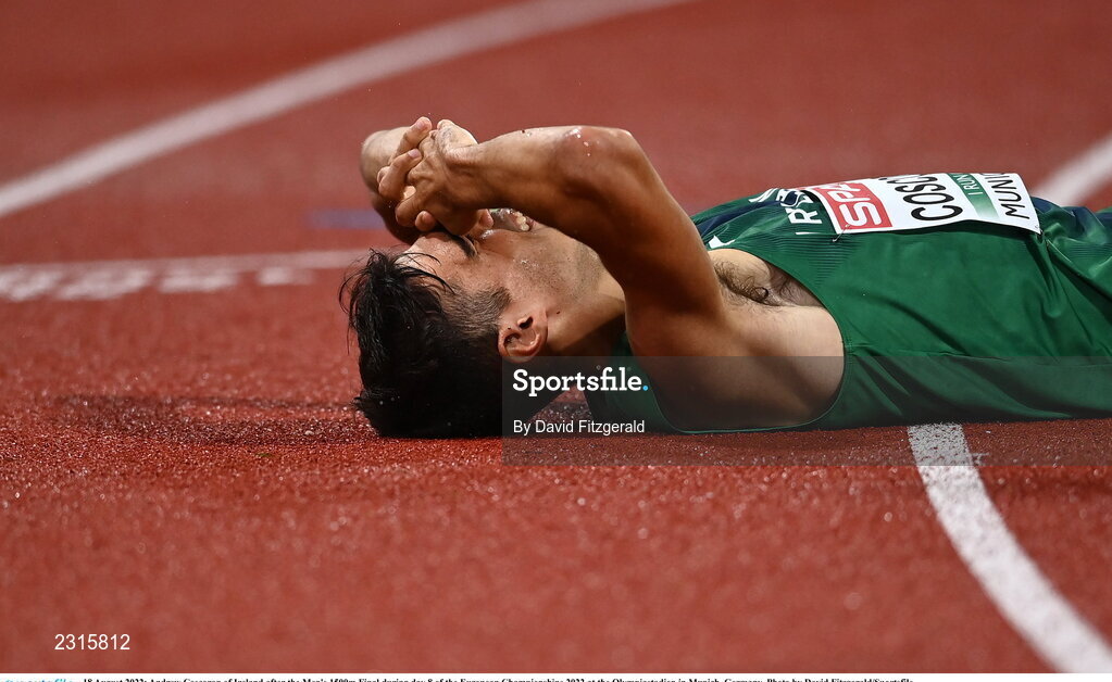 18 August 2022; Andrew Coscoran of Ireland after the Men's 1500m Final during day 8 of the European Championships 2022 at the Olympiastadion in Munich, Germany. Photo by David Fitzgerald/Sportsfile