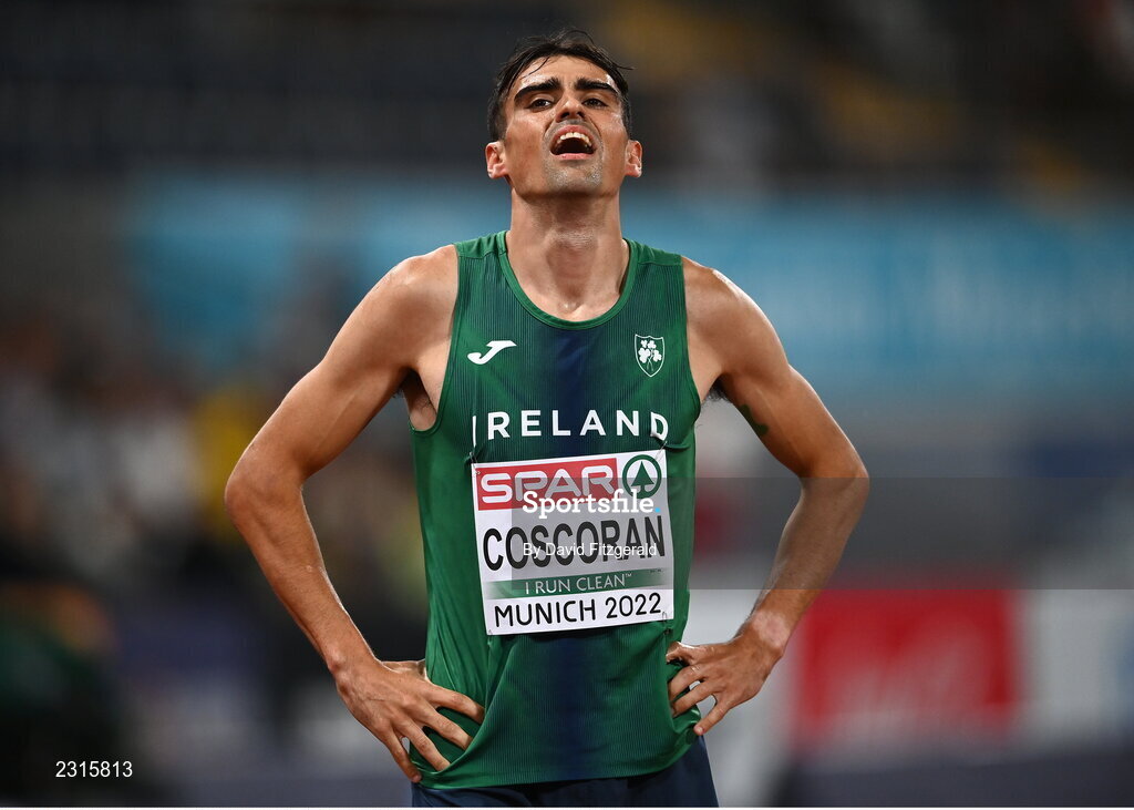 18 August 2022; Andrew Coscoran of Ireland after the Men's 1500m Final during day 8 of the European Championships 2022 at the Olympiastadion in Munich, Germany. Photo by David Fitzgerald/Sportsfile