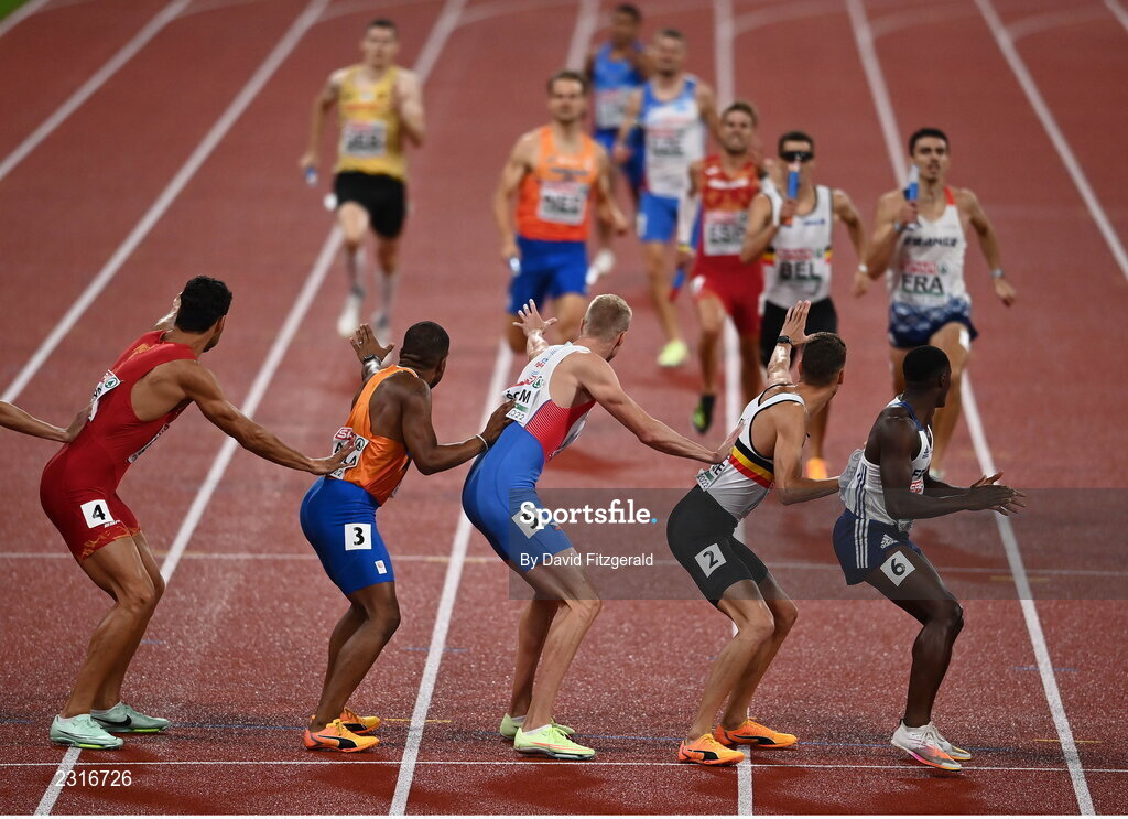 20 August 2022; A general view during the Men's 4x400m Relay Final during day 10 of the European Championships 2022 at the Olympiastadion in Munich, Germany. Photo by David Fitzgerald/Sportsfile