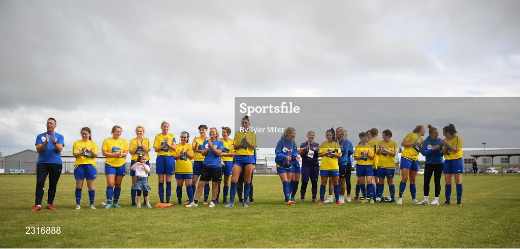 20 August 2022; The Terenure Rangers squad watch on as their opponents collect their awards after the FAI Women's Intermediate Shield Final 2022 match between Terenure Rangers and Corrib Celtic FC at Leah Victoria Park in Tullamore, Offaly. Photo by Tyler Miller/Sportsfile