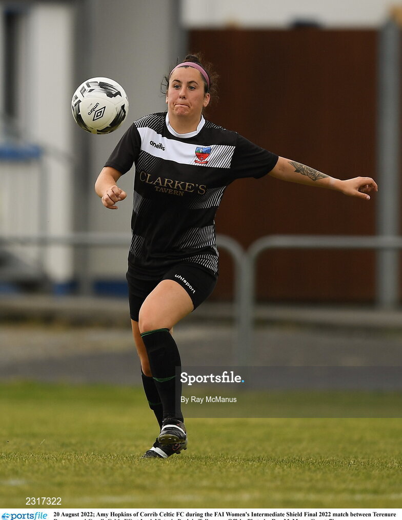 20 August 2022; Amy Hopkins of Corrib Celtic FC during the FAI Women's Intermediate Shield Final 2022 match between Terenure Rangers and Corrib Celtic FC at Leah Victoria Park in Tullamore, Offaly. Photo by Ray McManus/Sportsfile