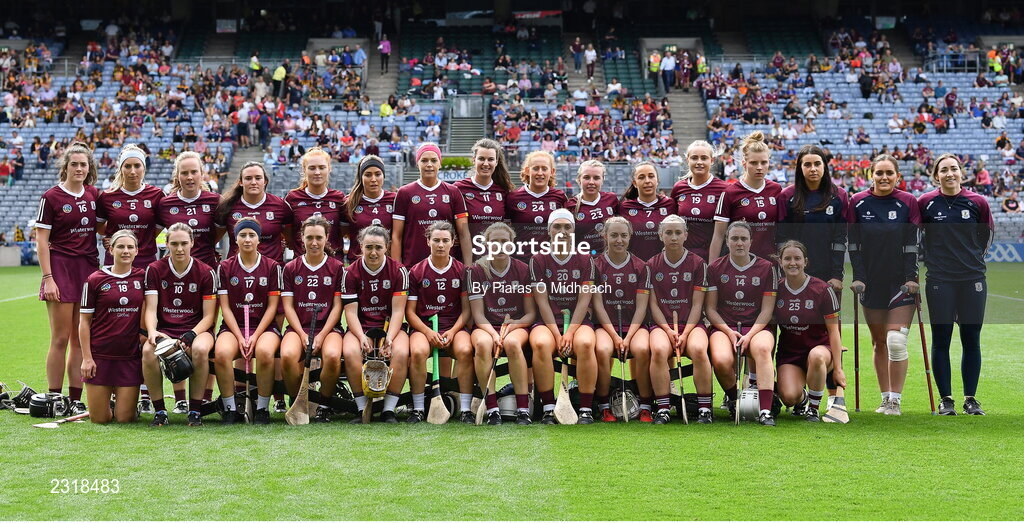 23 July 2022; The Galway squad before the Glen Dimplex Senior Camogie All-Ireland Championship Semi-Final match between Galway and Kilkenny at Croke Park in Dublin. Photo by Piaras Ó Mídheach/Sportsfile