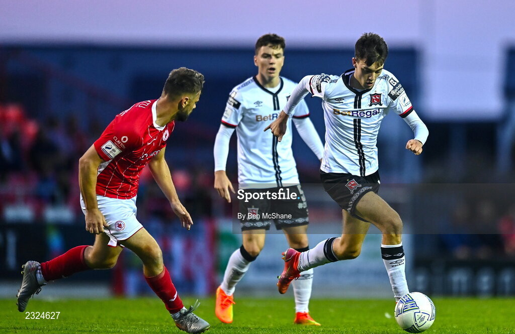 29 August 2022; Steven Bradley of Dundalk in action against Greg Bolger of Sligo Rovers during the SSE Airtricity League Premier Division match between Sligo Rovers and Dundalk at The Showgrounds in Sligo. Photo by Ben McShane/Sportsfile