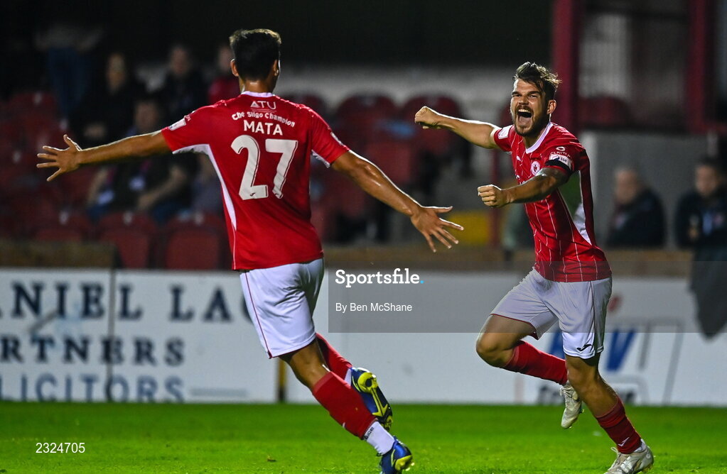 29 August 2022; Frank Liivak of Sligo Rovers celebrates after scoring his side's second goal during the SSE Airtricity League Premier Division match between Sligo Rovers and Dundalk at The Showgrounds in Sligo. Photo by Ben McShane/Sportsfile