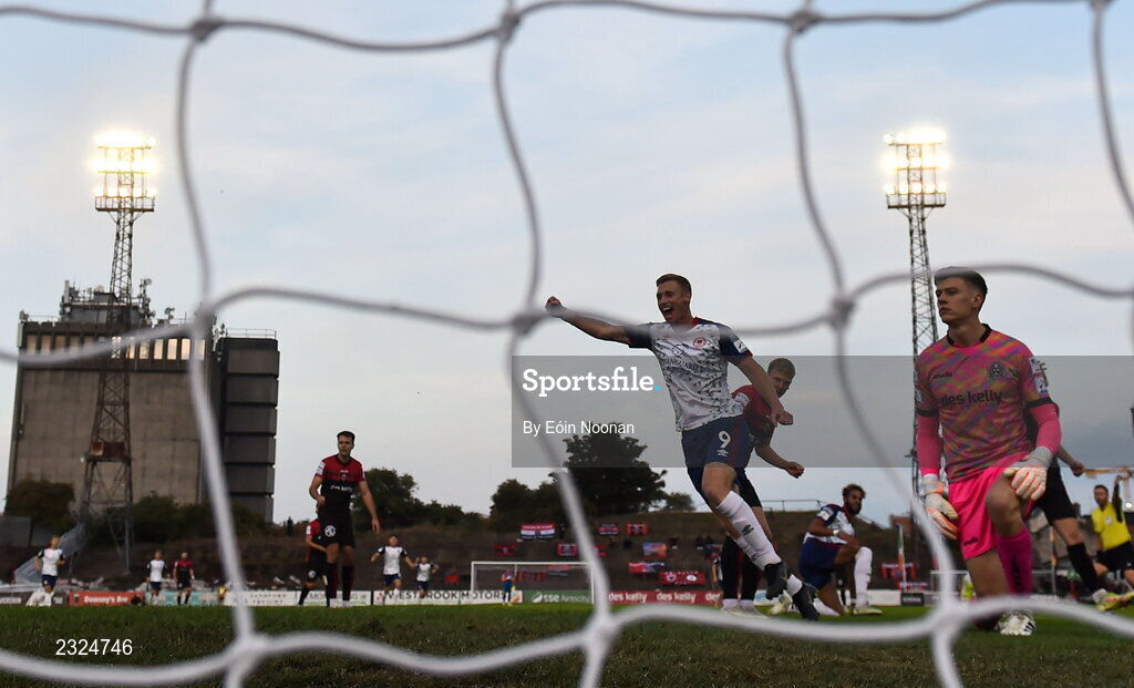 29 August 2022; Eoin Doyle of St Patrick's Athletic celebrates after teammate Barry Cotter scored their side's first goal during the SSE Airtricity League Premier Division match between Bohemians and St Patrick's Athletic at Dalymount Park in Dublin. Photo by Eóin Noonan/Sportsfile