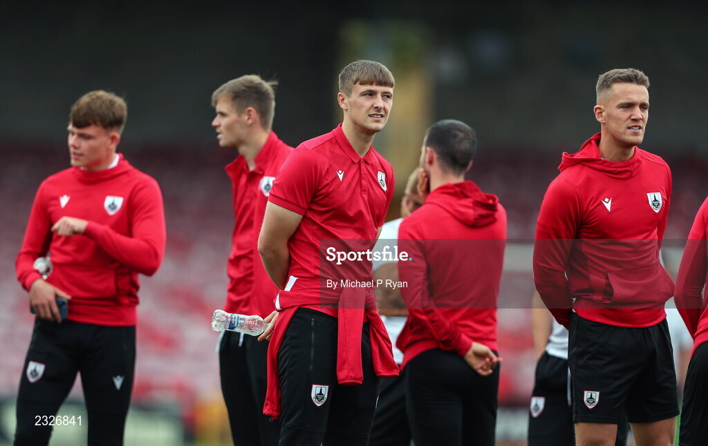 2 September 2022; Longford Town players before the SSE Airtricity League First Division match between Cork City and Longford Town at Turners Cross in Cork. Photo by Michael P Ryan/Sportsfile