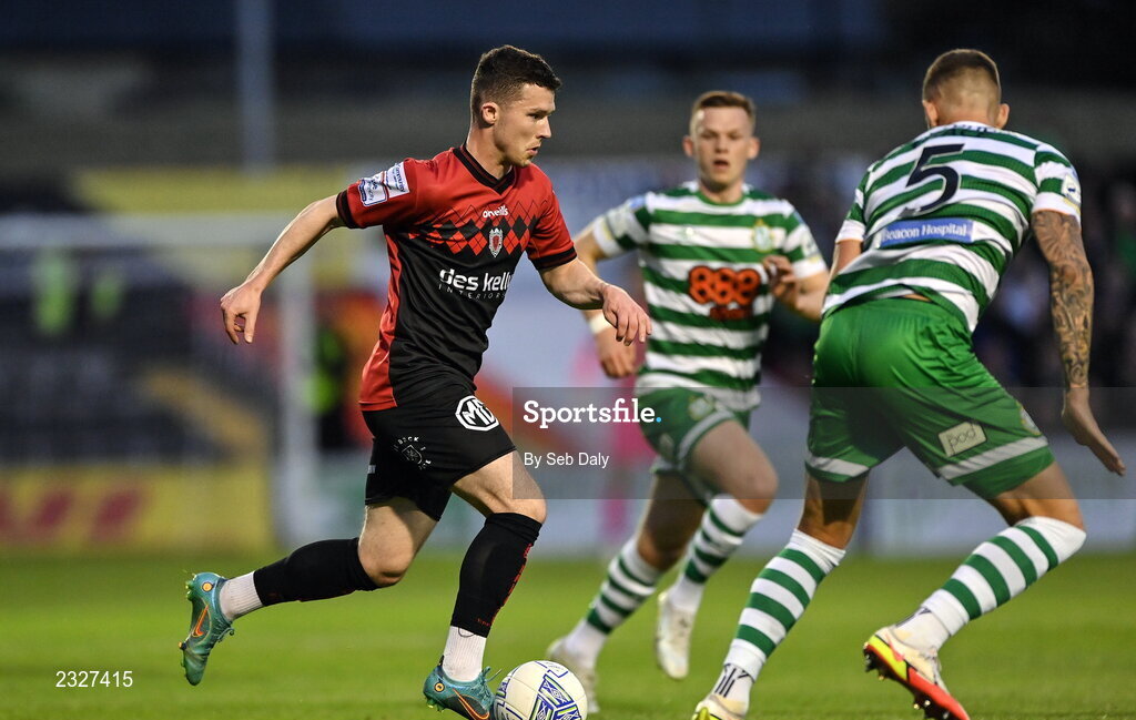 2 September 2022; Ali Coote of Bohemians in action against Lee Grace of Shamrock Rovers during the SSE Airtricity League Premier Division match between Bohemians and Shamrock Rovers at Dalymount Park in Dublin. Photo by Seb Daly/Sportsfile