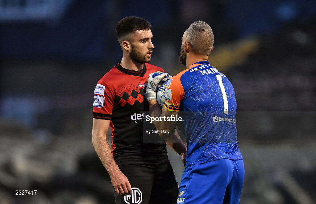 2 September 2022; Ethon Varian of Bohemians and Shamrock Rovers goalkeeer Alan Mannus during the SSE Airtricity League Premier Division match between Bohemians and Shamrock Rovers at Dalymount Park in Dublin. Photo by Seb Daly/Sportsfile