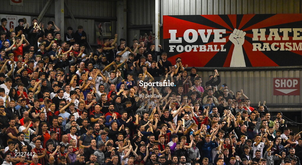 2 September 2022; Bohemians supporters during the SSE Airtricity League Premier Division match between Bohemians and Shamrock Rovers at Dalymount Park in Dublin. Photo by Seb Daly/Sportsfile