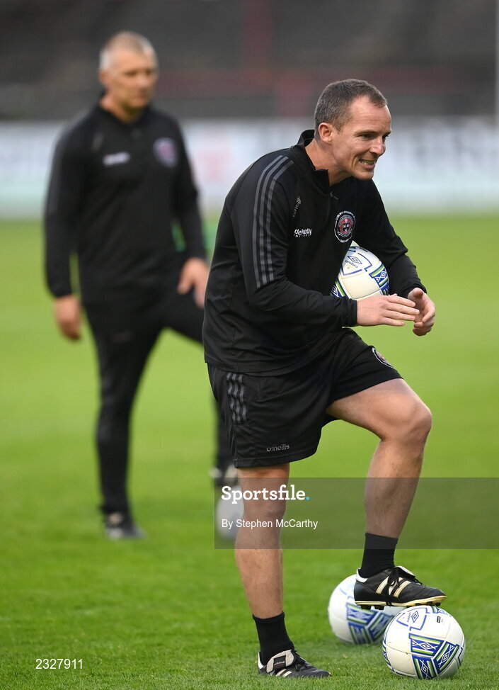 2 September 2022; Bohemians interim managers Derek Pender, right, and Trevor Croly during the SSE Airtricity League Premier Division match between Bohemians and Shamrock Rovers at Dalymount Park in Dublin. Photo by Stephen McCarthy/Sportsfile