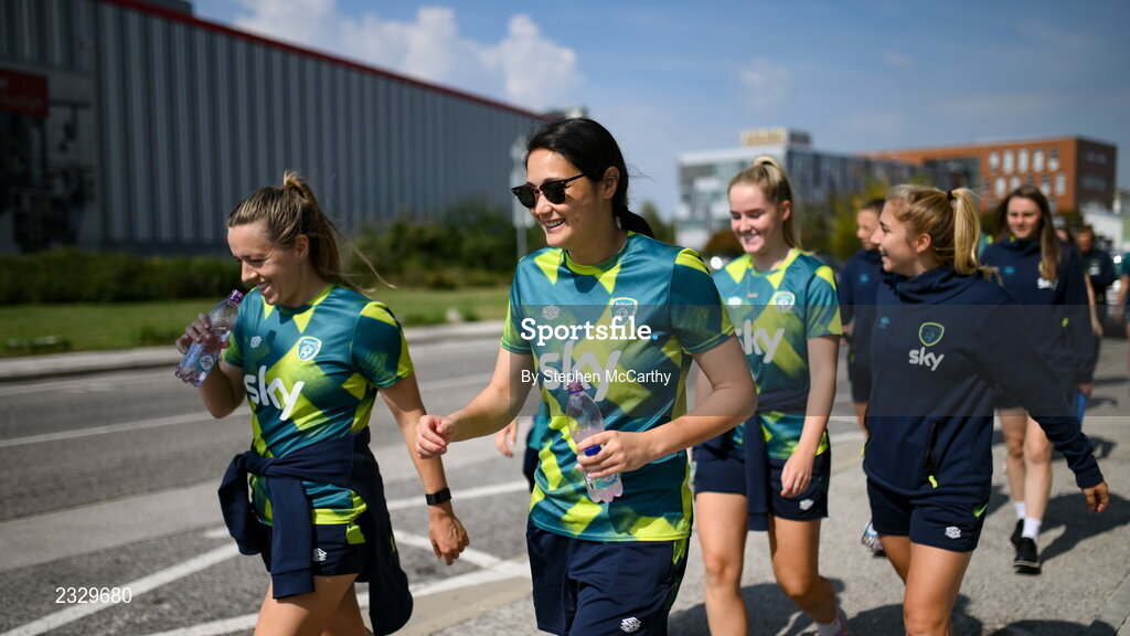 6 September 2022; Republic of Ireland goalkeeper Eve Badana and Harriet Scott, left, during a team walk near their hotel before the FIFA Women's World Cup 2023 Qualifier match between Slovakia and Republic of Ireland at National Training Centre in Senec, Slovakia. Photo by Stephen McCarthy/Sportsfile