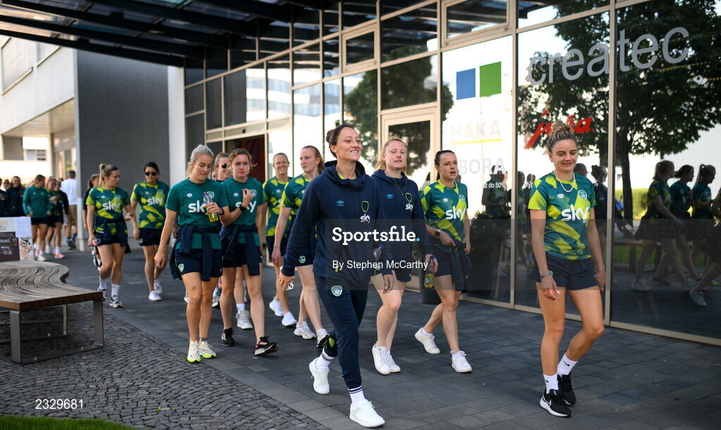 6 September 2022; Republic of Ireland players, from left, Megan Campbell, Amber Barrett, Áine O'Gorman and Leanne Kiernan during a team walk near their hotel before the FIFA Women's World Cup 2023 Qualifier match between Slovakia and Republic of Ireland at National Training Centre in Senec, Slovakia. Photo by Stephen McCarthy/Sportsfile