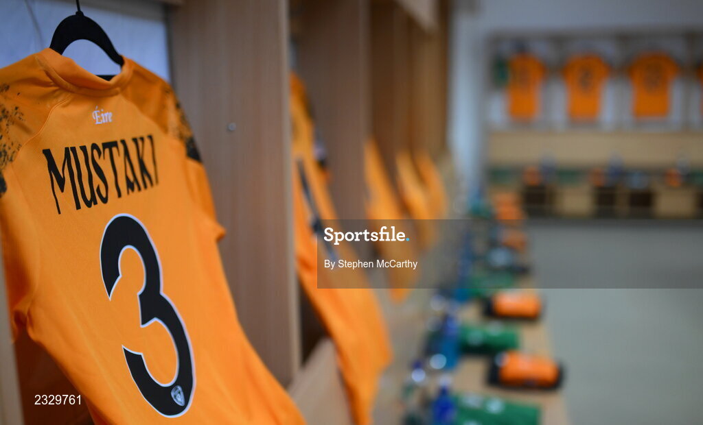 6 September 2022; The jersey of Chloe Mustaki hangs in the Republic of Ireland dressing room before the FIFA Women's World Cup 2023 Qualifier match between Slovakia and Republic of Ireland at National Training Centre in Senec, Slovakia. Photo by Stephen McCarthy/Sportsfile