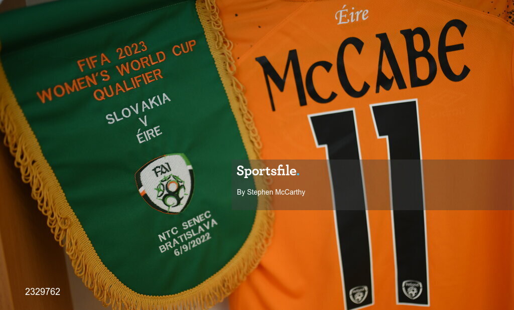 6 September 2022; The jersey of Katie McCabe hangs in the Republic of Ireland dressing room before the FIFA Women's World Cup 2023 Qualifier match between Slovakia and Republic of Ireland at National Training Centre in Senec, Slovakia. Photo by Stephen McCarthy/Sportsfile
