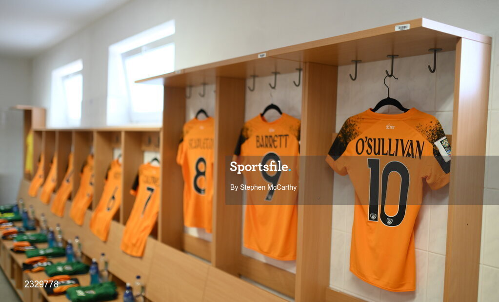 6 September 2022; The jersey of Denise O'Sullivan hangs in the Republic of Ireland dressing room before the FIFA Women's World Cup 2023 Qualifier match between Slovakia and Republic of Ireland at National Training Centre in Senec, Slovakia. Photo by Stephen McCarthy/Sportsfile