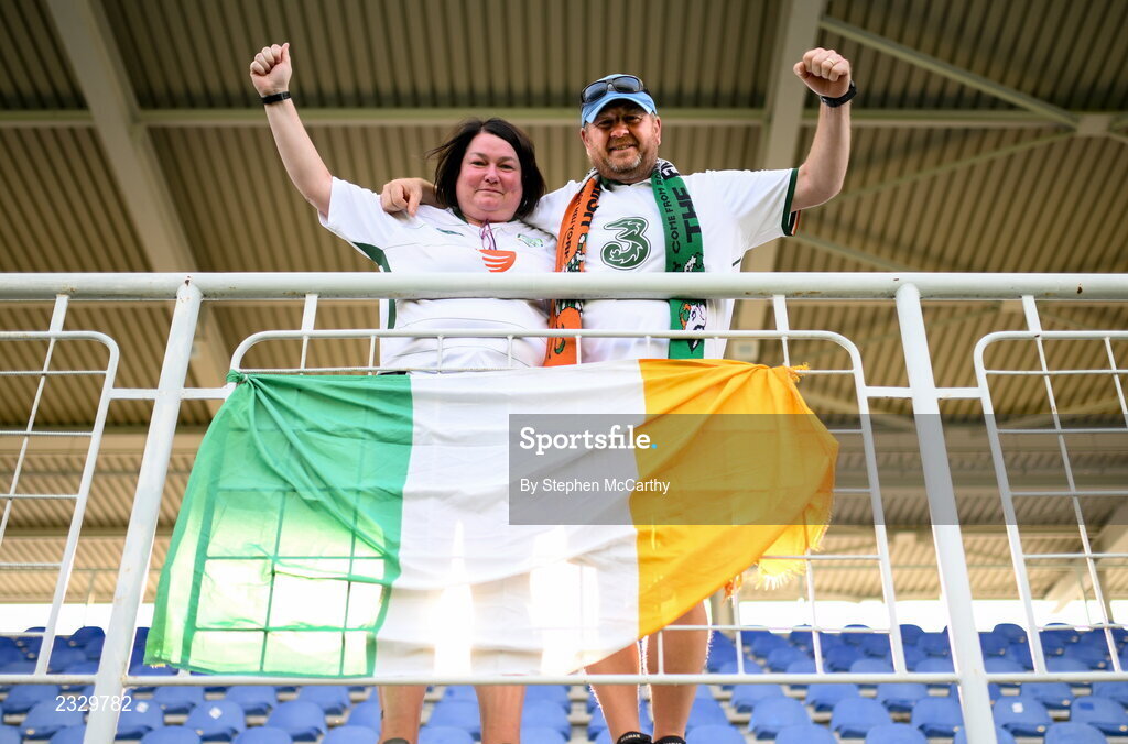 6 September 2022; Republic of Ireland supporters before the FIFA Women's World Cup 2023 Qualifier match between Slovakia and Republic of Ireland at National Training Centre in Senec, Slovakia. Photo by Stephen McCarthy/Sportsfile