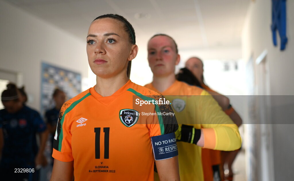 6 September 2022; Republic of Ireland captain Katie McCabe before the FIFA Women's World Cup 2023 Qualifier match between Slovakia and Republic of Ireland at National Training Centre in Senec, Slovakia. Photo by Stephen McCarthy/Sportsfile