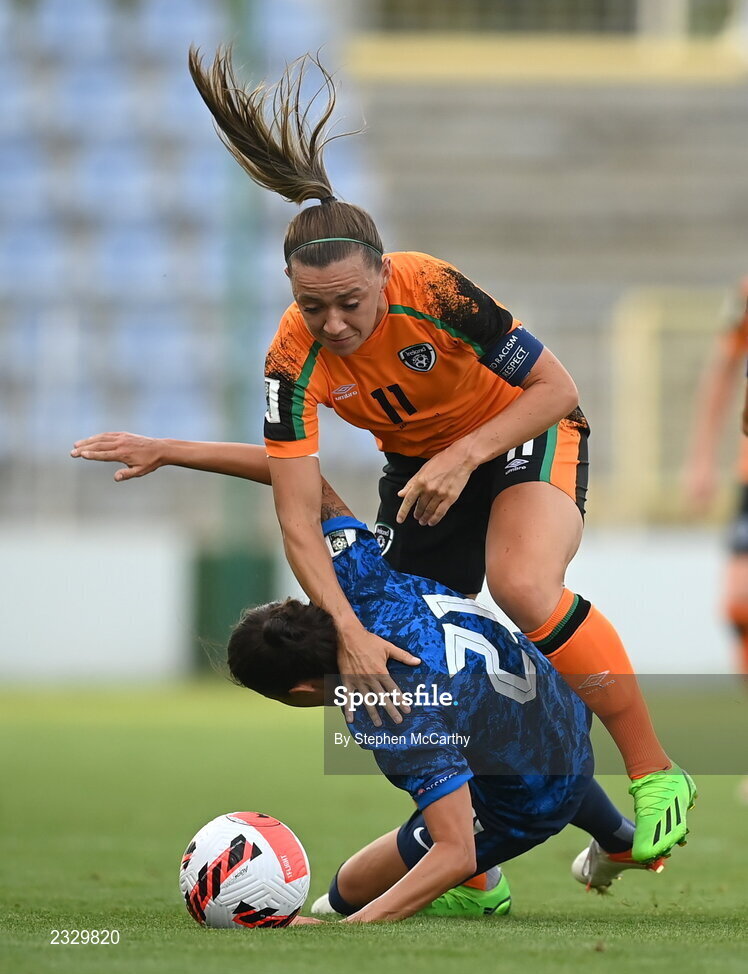 6 September 2022; Katie McCabe of Republic of Ireland is tackled by Martina Šurnovská of Slovakia, 21, during the FIFA Women's World Cup 2023 Qualifier match between Slovakia and Republic of Ireland at National Training Centre in Senec, Slovakia. Photo by Stephen McCarthy/Sportsfile