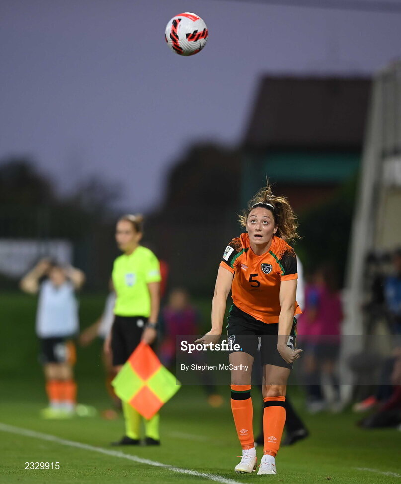 6 September 2022; Megan Campbell of Republic of Ireland takes a throw-in during the FIFA Women's World Cup 2023 Qualifier match between Slovakia and Republic of Ireland at National Training Centre in Senec, Slovakia. Photo by Stephen McCarthy/Sportsfile