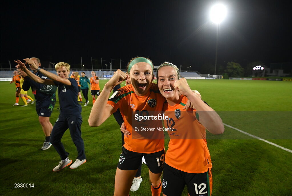 6 September 2022; Hayley Nolan, left, and Lily Agg of Republic of Ireland after the FIFA Women's World Cup 2023 Qualifier match between Slovakia and Republic of Ireland at National Training Centre in Senec, Slovakia. Photo by Stephen McCarthy/Sportsfile