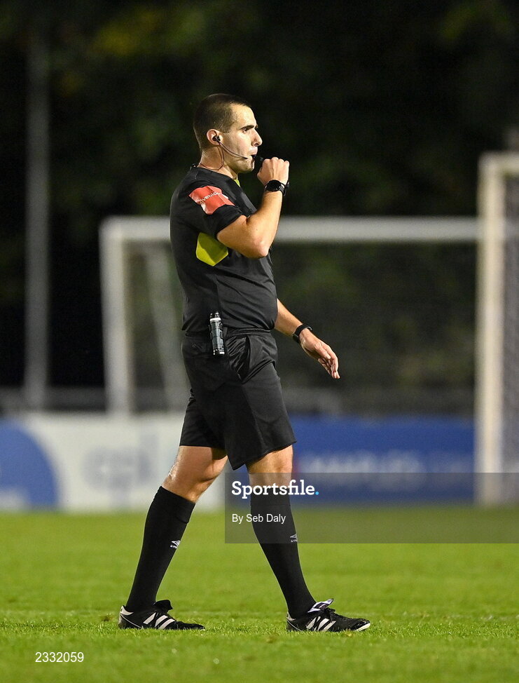 9 September 2022; Referee Adriano Reale during the SSE Airtricity League Premier Division match between UCD and Dundalk at UCD Bowl in Dublin. Photo by Seb Daly/Sportsfile