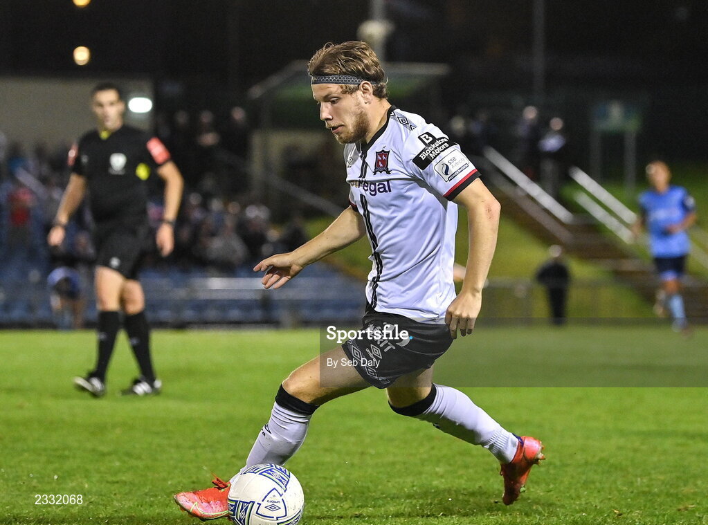 9 September 2022; Runar Hauge of Dundalk during the SSE Airtricity League Premier Division match between UCD and Dundalk at UCD Bowl in Dublin. Photo by Seb Daly/Sportsfile
