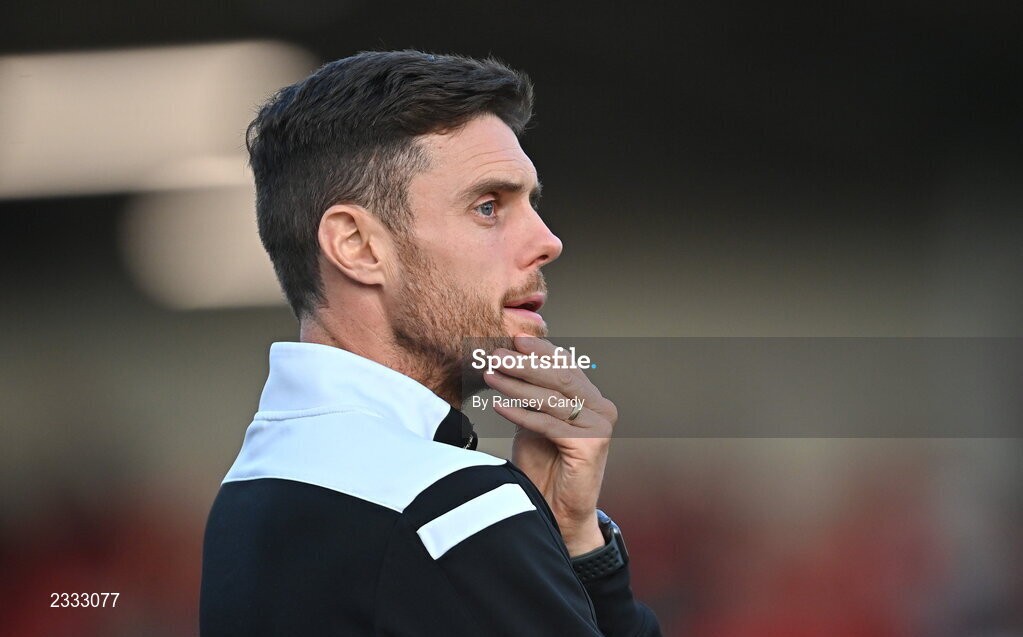 13 September 2022; Sligo Rovers manager John Russell during the SSE Airtricity League Premier Division match between Derry City and Sligo Rovers at The Ryan McBride Brandywell Stadium in Derry. Photo by Ramsey Cardy/Sportsfile