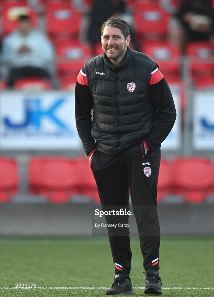 13 September 2022; Derry City manager Ruaidhrí Higgins during the SSE Airtricity League Premier Division match between Derry City and Sligo Rovers at The Ryan McBride Brandywell Stadium in Derry. Photo by Ramsey Cardy/Sportsfile