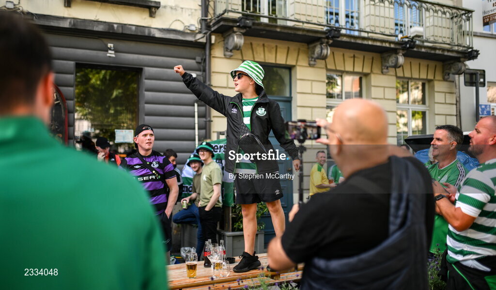 15 September 2022; A young Shamrock Rovers supporter before the UEFA Europa Conference League Group F match between Gent and Shamrock Rovers at KAA Gent Stadium in Gent, Belgium. Photo by Stephen McCarthy/Sportsfile