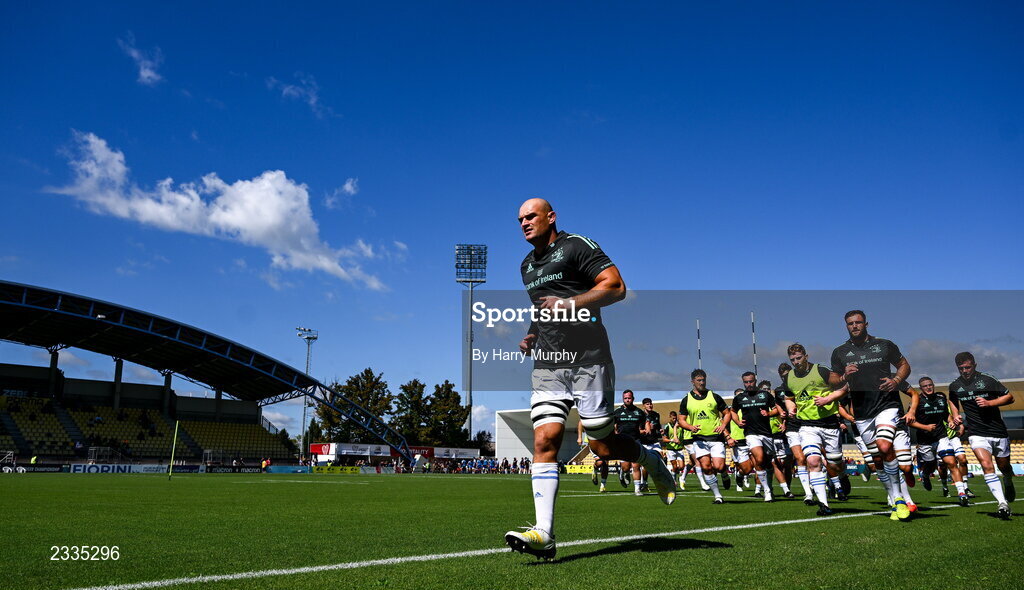 17 September 2022; Leinster captain Rhys Ruddock leads the team around the pitch before the United Rugby Championship match between Zebre Parma and Leinster at Stadio Sergio Lanfranchi in Parma, Italy. Photo by Harry Murphy/Sportsfile