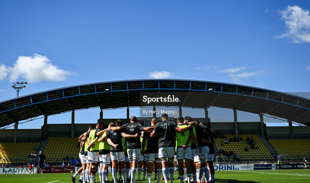 17 September 2022; Leinster players huddle before the United Rugby Championship match between Zebre Parma and Leinster at Stadio Sergio Lanfranchi in Parma, Italy. Photo by Harry Murphy/Sportsfile