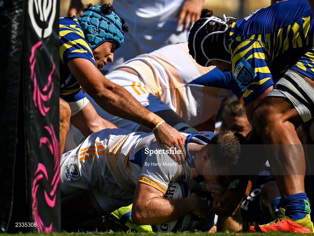 17 September 2022; Luke McGrath of Leinster scores his side's first try during the United Rugby Championship match between Zebre Parma and Leinster at Stadio Sergio Lanfranchi in Parma, Italy. Photo by Harry Murphy/Sportsfile