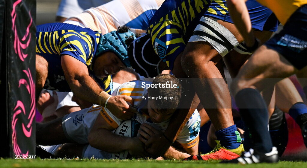 17 September 2022; Luke McGrath of Leinster scores his side's first try during the United Rugby Championship match between Zebre Parma and Leinster at Stadio Sergio Lanfranchi in Parma, Italy. Photo by Harry Murphy/Sportsfile