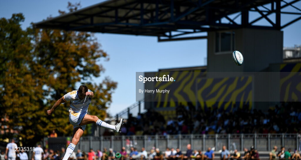 17 September 2022; Ross Byrne of Leinster kicks a conversion during the United Rugby Championship match between Zebre Parma and Leinster at Stadio Sergio Lanfranchi in Parma, Italy. Photo by Harry Murphy/Sportsfile