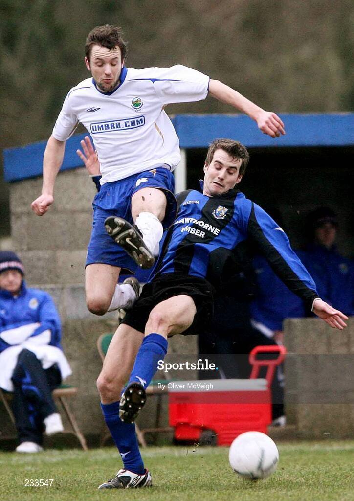 27 January 2007; Tim Mouncey, Linfield, in action against Mark Turkington, Armagh City. Carnegie Premier League, Armagh City v Linfield, Holm Park, Armagh. Picture Credit: Oliver McVeigh / SPORTSFILE